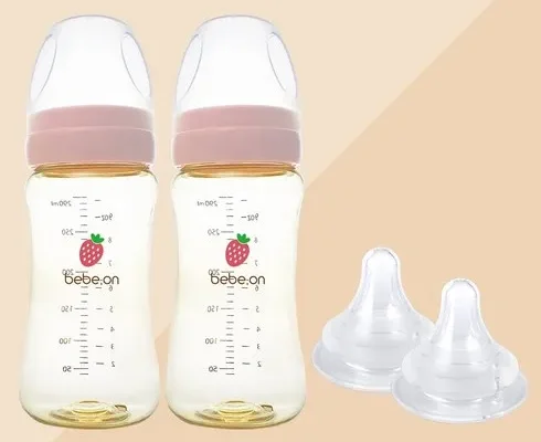 베베온 PPSU 와이드 젖병 200ML/300ML (젖병2개+젖꼭지2개입), 베베온 S 젖꼭지(1~3개월) 2개, [05] 베베온 PPSU 200ml(핑크)2개