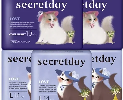 시크릿데이 러브 중형 16p x 3팩 + 대형 14p x 2팩 + 오버나이트 10p, 1세트
