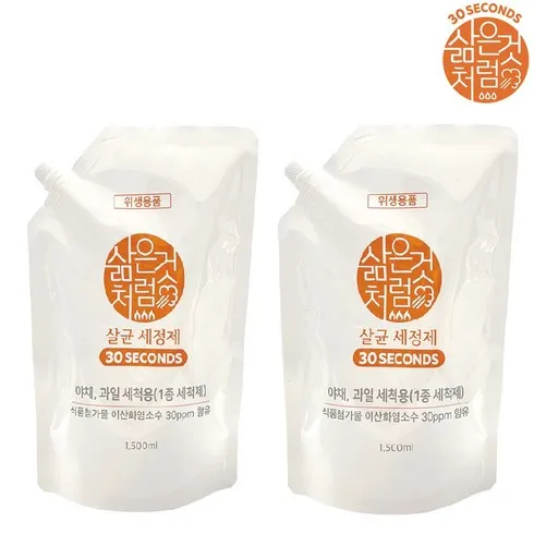 써티세컨즈 삶은것처럼 1종 살균 주방세제 리필용 1500ml 1+1, 2개