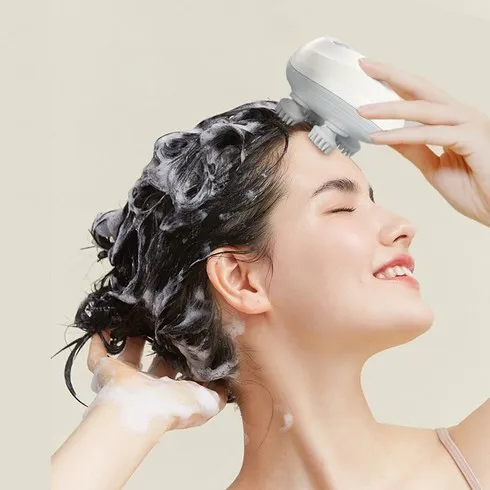 머리 두피 마사지 전동머리 마사지 기구 건습양용 실리콘 전신사용 USB, 화이트
