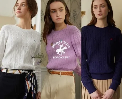 [KT알파쇼핑]24SS 신상! 비버리힐즈폴로클럽 여성 오가닉코튼 케이블니트 3종