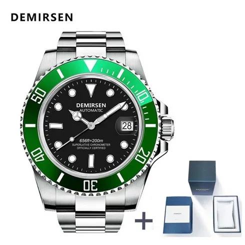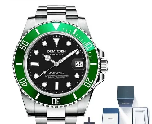 demirsen 남자 기계식 시계 자동 날짜 패션 럭셔리 브랜드 사파이어 다이버 방수 시계 남성 발광 손목 시계